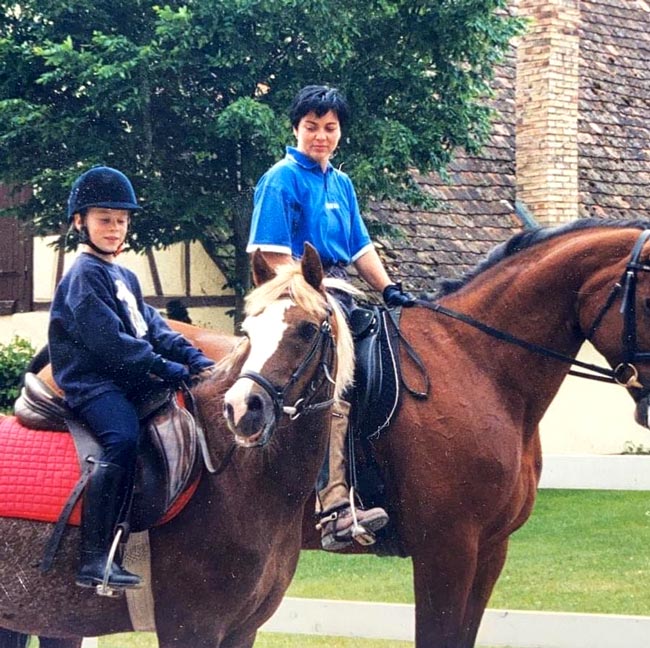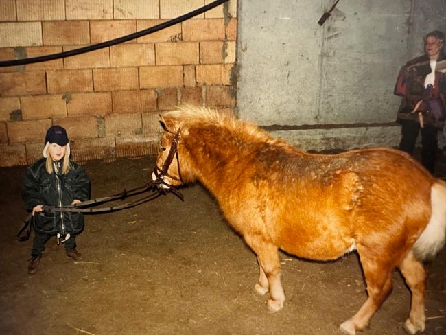 Anna-Lisa Stotmeister liebt Pferde. Da sie auf einem Reiterhof aufwächst, kommt sie früh mit den Tieren in Berührung, hier mit Shetlandpony Leila Mitte der 90er-Jahre.